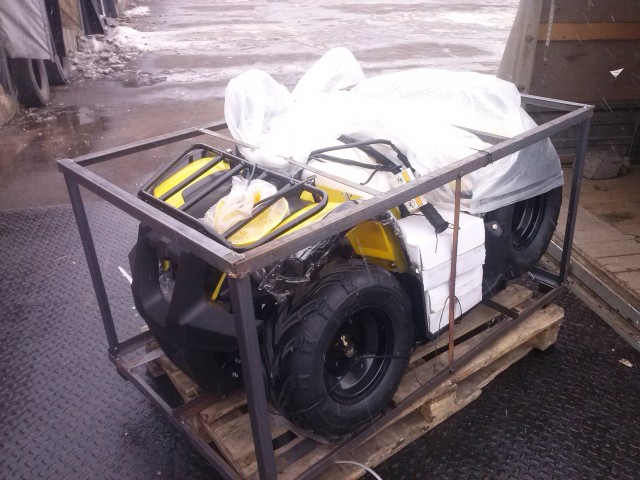 Квадроцикл для детей на бензине 125 куб.см. Фото квадрика в коробке, требуется установить колеса, багажники и поставить аккумулятор