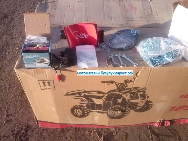 В комплектацию детского квадрика входит аккумулятор с зарядкой, цепи противоскольжения для зимы, ключи, инструкция